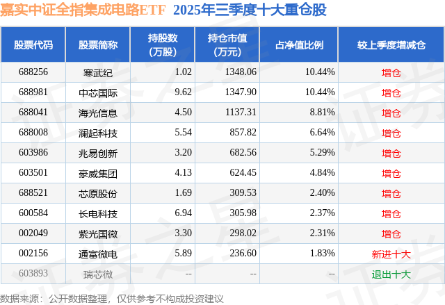 本站音问,日前嘉实中证全指集成电路ETF基金公布三季报开yun体育网,2025年三季度最新界限1.29亿元,季度净值涨幅为50.59%。 从功绩阐明来看,嘉实中证全指集成电路ETF基金往常一年净值涨幅为64.26%,在同类基金中名次184/2534,同类基金往常一年净值涨幅中位数为25.31%。而基金往常一年的最大回撤为-21.02%,竖立以来的最大回撤为-21.02%。 从基金界限来看,嘉实中证全指集成电路ETF基金2025年三季度公布的基金界限为1.29亿元,较上一期界限6930.71万元