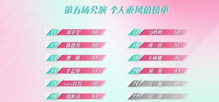 就比如VaVa与黄英,个东谈主乘风值一个排第15位,一个排在第20位。