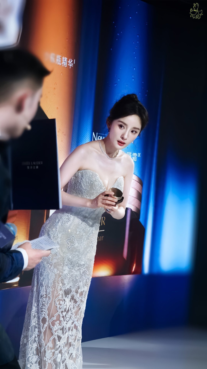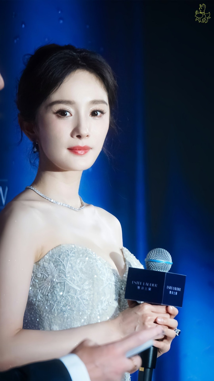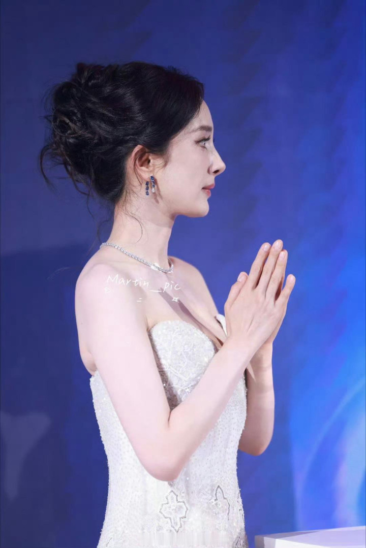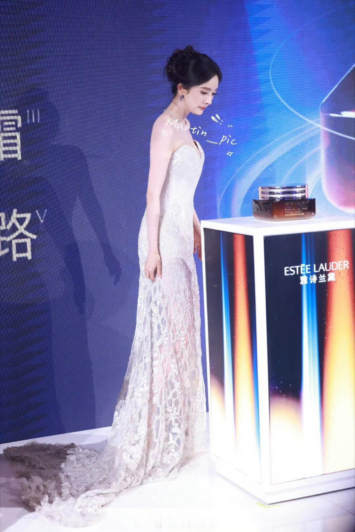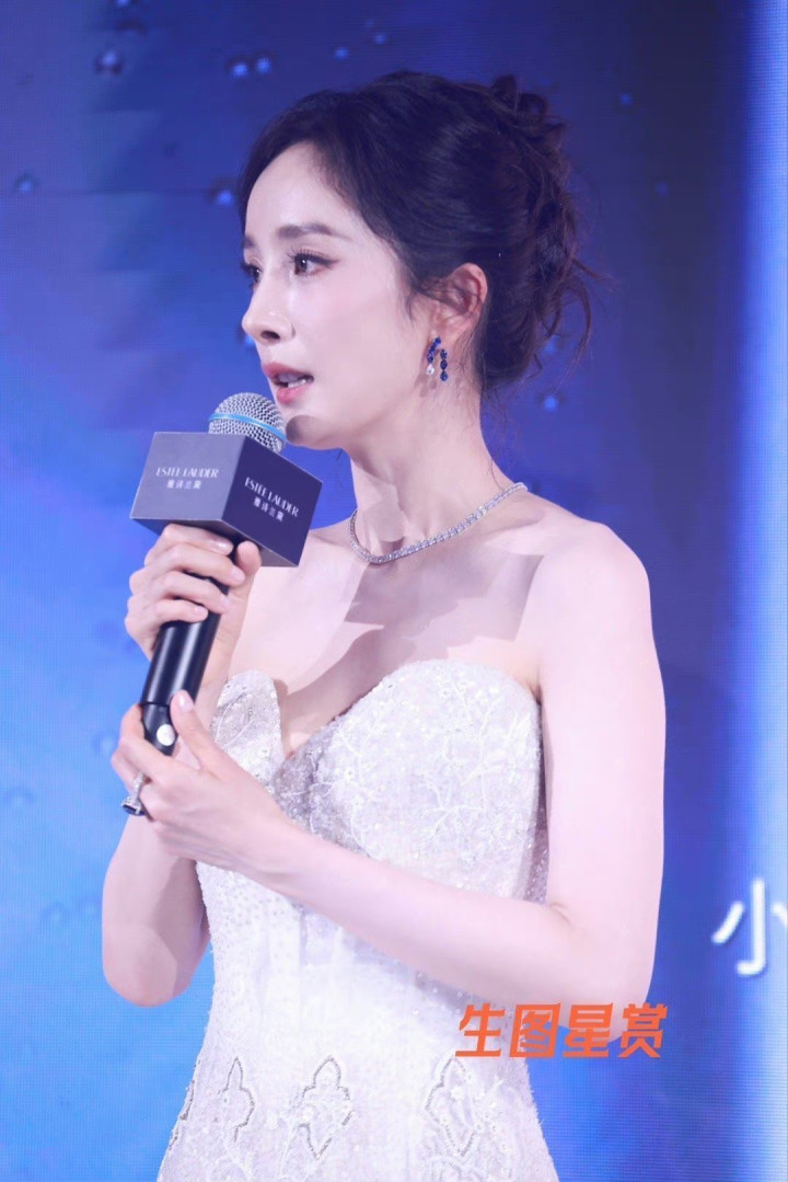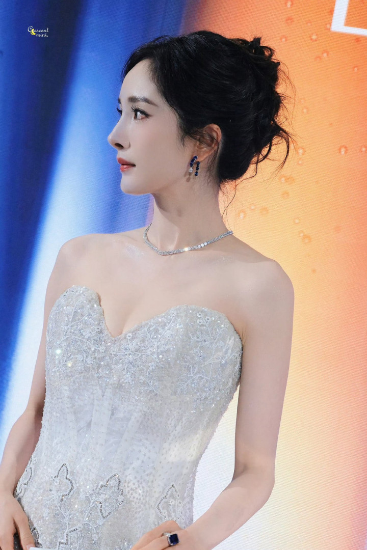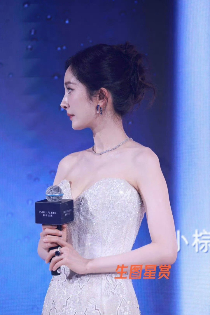 38 岁杨幂身着抹胸礼裙,尽显优雅女神范