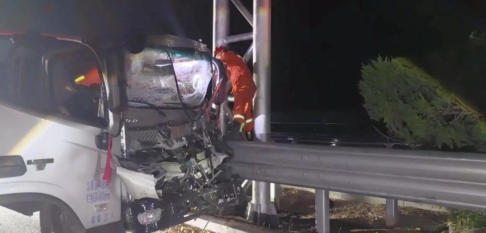 △货车车头严重变形。图源:菏泽消防